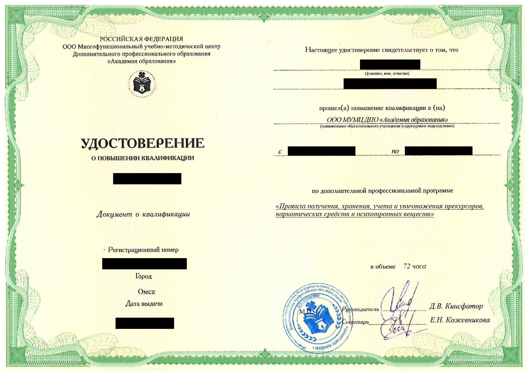 Повышение квалификации правила получения, хранения, учета и уничтожения прекурсоров, наркотических средств и психотропных веществ в Курске